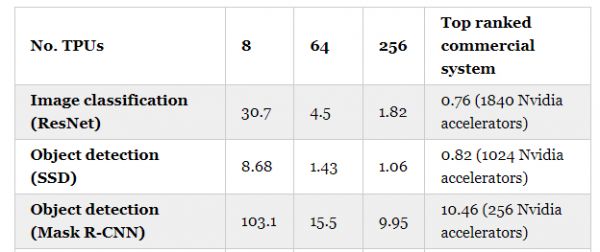 当然,超级计算机之所以无法达到exaflop,是因为需要保证一定的精度,但是第4代TPU无法在如此精度的前提下实现exaflop。另一方面,谷歌公布了第4代TPU的测试结果,其中就包括ResNet-50(图像分类)、SSD(物体检测)和 Mask R-CNN(对象检测)这三大视觉测试。