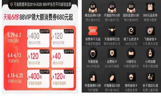 图3:针对88VIP的会员权益和大额消费券 数据来源:天猫官网,36氪