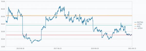 但如果从估值的角度来看,目前主要电商平台的估值已经在一定程度上反映了市场对电商行业竞争格局和短期利润下修的悲观预期,行业巨头短期向下的空间在不断收窄。以阿里为例,截至2021年6月15日,阿里巴巴整体市盈率(PE)为25倍,创2020年5月以来新低,远低于上市以来的长期均值中枢(38倍)。