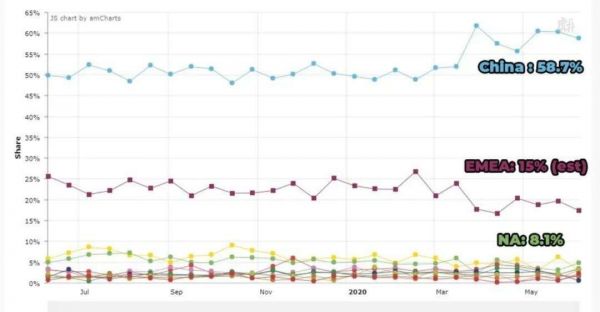 2020年,有游戏博主做的统计中,全球“吃鸡”用户里,中国市场一度超过60%的市场份额,截止2020年上半年,中国吃鸡用户约占全球用户的58.7%。