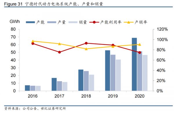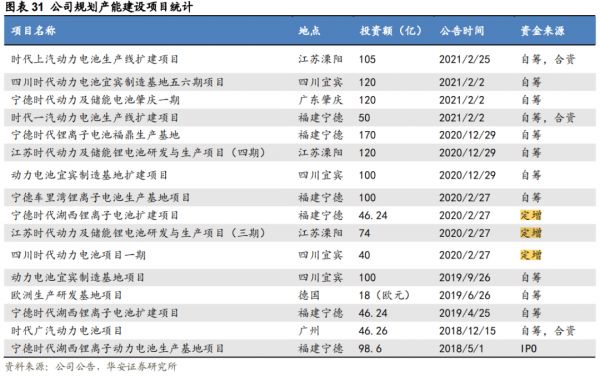 宁德时代也是其中产能扩张的主力军。据曾毓群透露,自2018年6月登陆创业板至今年5月17日,宁德时代已公告的产能投资规模超过900亿元。除国内扩张产能以供应特斯拉中国、一汽、吉利、蔚来、小鹏等车企外,宁德时代在德国启动了海外生产基地,用于供给宝马、戴姆勒、标致雪铁龙等欧洲车企。