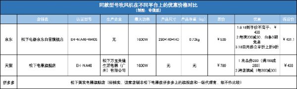 同型号吹风机在不同平台上的优惠价格对比制图:奇偶派