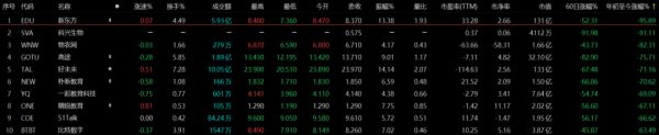 美股市场上,在线教育中概股持续大跌,也反映出资本对行业信心的动摇。东方财富Choice数据显示,6月17日第一高中教育、好未来、新东方、高途的单日跌幅分别达到了15.81%、13.98%、8.84%、8.39%;年初至今跌幅最大的10家公司,在线教育占据7席,新东方跌幅达95.89%。