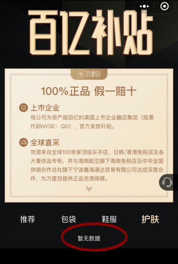 Tech星球近期注意到,“万里目”小程序中,所有美妆品类商品都已悉数下架,仅剩下少量鞋饰箱包类产品,多为此前未售出的库存商品。在询问客服后,客服表示,目前护肤品售罄,暂时没有库存,上架日期待定。同时,此前万里目为拓展销售途径,而开设的同名拼多多店铺现在也已经搜索不到。