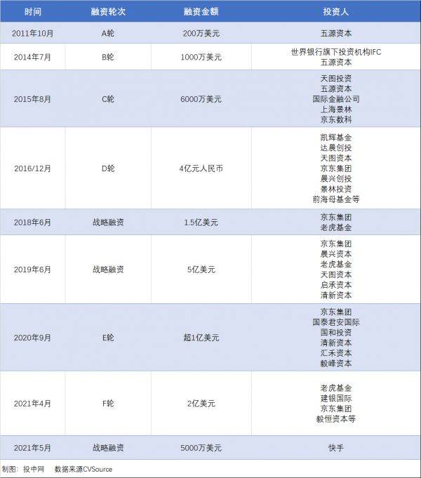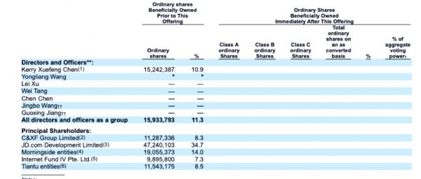 根据招股书,IPO前,京东持股34.7%,为公司最大股东,五源资本持股14%,天图资本持股8.5%,老虎环球基金持股7.3%。