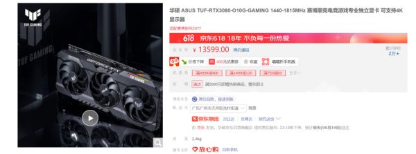 而且,从官方态度也能够知道,他们并没有主动压下价格的意愿,除了少数直播活动和限时抢购中放出了数十张“原价显卡”外。即使是在英伟达官方组织的直播活动中,原定官方售价8999元的RTX 3080Ti售价也为1xxx9元(因为活动尚未开始,所以官方微博仅给出了预告价格)。