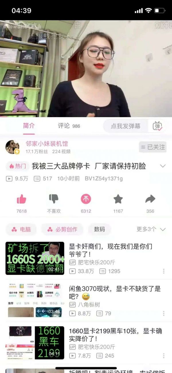 而且,一位下游经销商在B站的发声,也侧面证明了玩家的猜测,这位ID为“邻家小妹装机馆”的UP在视频中表示,自己因为低价出售显卡而被供货商停止了显卡供应,以示警告。