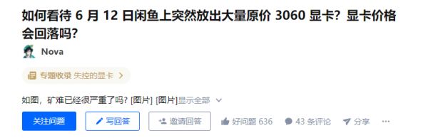 很快,闲鱼就被各种“原价”显卡所充斥,不明真相的买家点进去搜索显卡,估计都会疑惑为什么显卡突然降价了这么多。而且,确实有人误以为矿难已经来临,以至于在知乎提出了如此一个问题:如何看待 6 月 12 日闲鱼上突然放出大量原价 3060 显卡?显卡价格会回落吗?