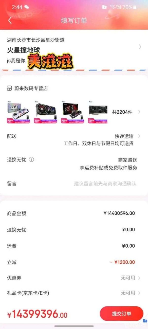 随后将拍下订单的过程以及后续与商家运营人员的对话发到了显卡吧,继而引来了众多网友的模仿,不少网友一次性下单了近千万的各类产品,然后等待24小时的自动取消。更有甚者直接付款,然后让快递滞留在快递站,等到7天无理由退货的最后期限到来,再进行退货处理。