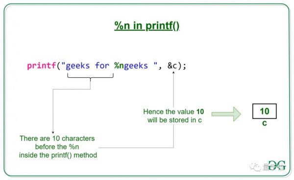 但是这行代码会将%n之前的字符数统计下来,存放在变量c中。