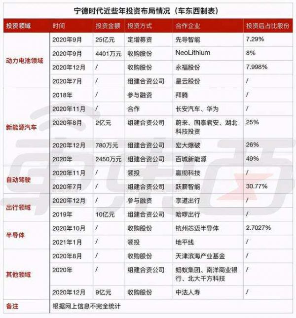 公开信息显示,宁德时代目前已经全方位切入到了出行领域,其投资领域除了动力电池之外,还包括新能源汽车、自动驾驶、充电桩等行业。
