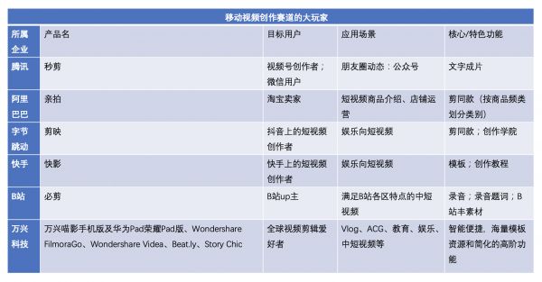 从2020年开始,移动视频创作工具赛道,陆续涌入巨头玩家。