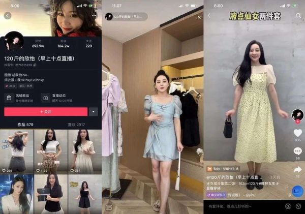 第一次刷到@120斤的欣怡的视频,时间还是在2019年下半年,视频里,她分享了一条牛仔背带裙是如何经过数十次打板调整,最终做成最为符合微胖星人穿着显瘦的版型。因为视频里配备了她的试穿体验,一前一后的对比,很容易吸引同样有着“梨形”身材困扰的用户种草,并点击链接跳转到淘内消费。