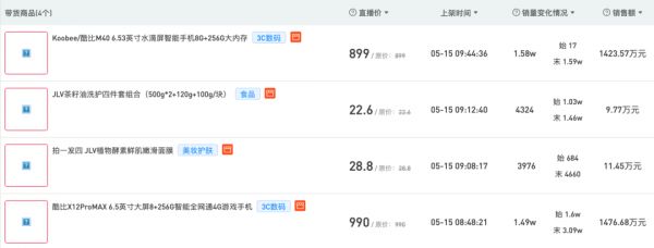 5月15-16日驴嫂平荣直播间带货列表 来源 / 新抖