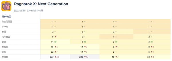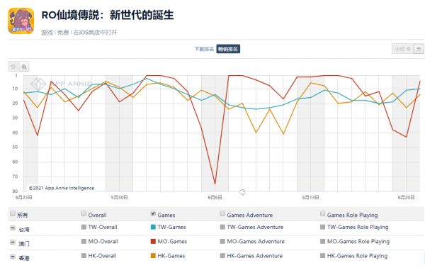 《RO:新世代》在港澳台市场的iOS畅销榜排名
