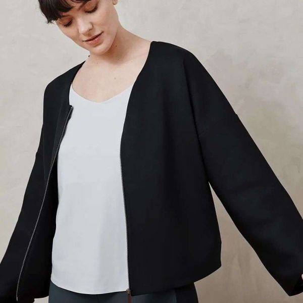 Aday 的这款名为 Waste Nothing 的上衣则使用了 41 个塑料水瓶进行制造。塑料瓶被分解成颗粒,然后在北卡罗来纳州的一家纺织厂制成单块织物,再被送往台湾,与其他材料混纺,制成 Aay 的专有面料。