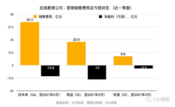 与之相比,另一个教培阶段,K12,在过去两年,已经在多个短视频流量平台投入巨额销售费用。单个季度销售费高达数十亿元。如下:
