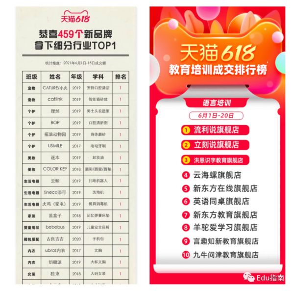 备:左图为618期间top销售额的新消费品牌,成为投资人紧密关注的标的。右图为淘宝教育618-语言培训top榜单,其中部分会否成为下一阶段风投标的,有待观察