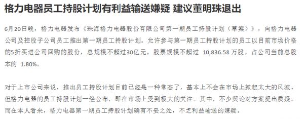 市场更加担忧的是格力电器是否会按相同模式制定后续员工持股计划。