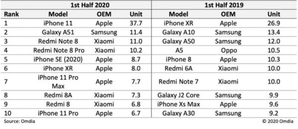 苹果加量不加价的策略,成功挽回了iPhone销量。市场调研机构Omdia统计的数据显示,2020上半年,iPhone 11的销量为3770万台,而2019年上半年,iPhone XR同期的销量只有2690万台。