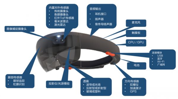 双目式——采用透明双目显示器,可显示 3D 立体图像,能应用于任何场景。HoloLens 和 Magic Leap、Nreal Light等。