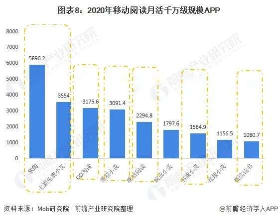 并且,在整个网文行业月活排行榜中,免费阅读APP的表现也更好。2020年12月,月活千万级以上的APP中,前两名都主打免费,分别是月活6162万的番茄免费小说、5434万的七猫免费小说。