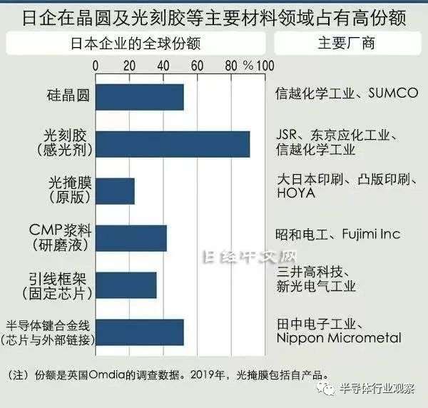 日企在晶圆及光刻胶等材料领域市场份额