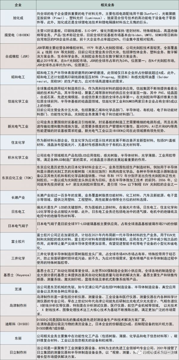 我们先来看看这20家企业,了解一下这些日本半导体界的“隐形冠军们”。