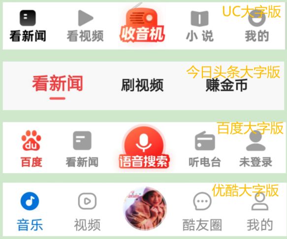 为了有的放矢,本人特意将这些大字版都下载下来体验了一遍。