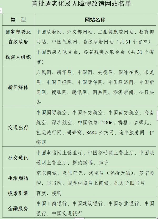 根据首批公布的适老化无障碍改造网站名单,新闻媒体、社交通讯、交通出行及生活购物类APP在列最多。