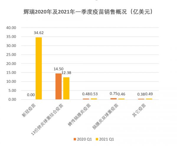 财报显示,2021年一季度,辉瑞实现了145.82亿美元的营收。而增长主要是由新冠疫苗带来的——BNT162b2一季度的销售额高达34.62亿美元,并代替了13价肺炎球菌结合疫苗,成为辉瑞最重磅的疫苗品种[5]。