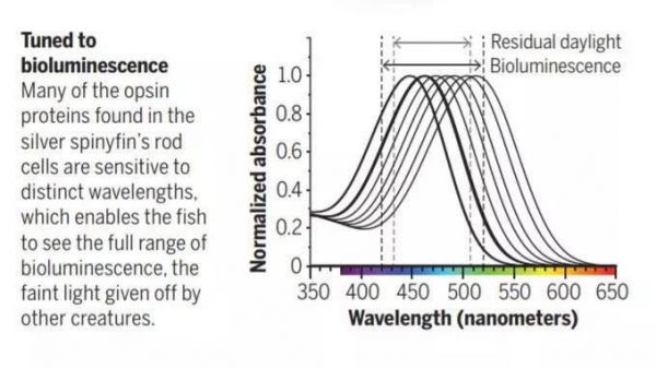 ▲深海鱼类中找到的视蛋白,能够识别不同波长的光(图片来源:参考资料[2])