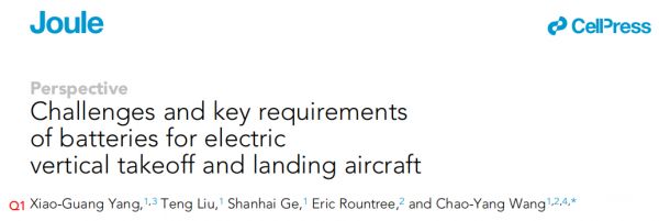 还记得电影《第五元素》里于空中灵活穿梭的飞行汽车么?一直以来,能坐上充满赛博朋克风的陆空两栖飞行器是很多人的梦想,自动驾驶技术的出现更是让这个梦想越来越近。当然,除了满足人们一飞冲天的愿望,两栖飞行器还是解决大城市交通拥堵问题的潜在方案。不过由于其陆空两用模式,飞行汽车对其电池性能有着极高的要求。作为核心技术,电池是也是飞行汽车商业化能否成功的关键。近日,美国宾州大学电化学发动机中心王朝阳团队研发出更加适用于垂直起降飞行器(eVTOL)的热调控电池,相关成果于 6 月 7 日发布在《焦耳》(Joule) 杂志上。