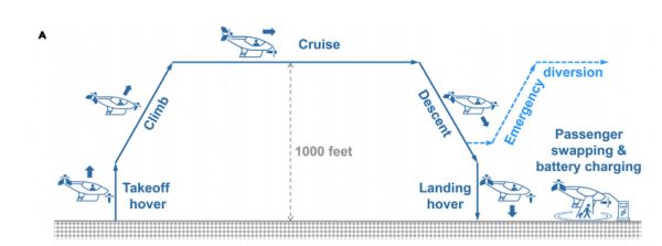 首先是高能量密度和高功率密度的问题。一般来说,垂直起降飞行器的飞行任务包含五个阶段:起飞、悬停、爬升、巡航、下降和降落悬停。在这五个阶段中,起飞和降落悬停有最高的功率需求,这决定了电池的最大放电速率。而巡航阶段的功率需求决定了电池的连续放电速率。通常情况下,垂直飞行器需要在悬停和巡航效率之间做出权衡:例如,利用推力矢量技术,拥有机翼的飞行器有通常巡航效率较高,但悬停效率较低;无翼多轴飞行器具有高效悬停效率,但巡航效率较低。因此,电池组需要根据飞行器的具体设计进行优化,以保障提供最大电力。研究人员表示,飞行汽车的电池需要有非常高的能量密度,这样才能在空中停留。而且在起飞和降落时也需要非常大的动力。重量也是需要考虑的一个因素,因为飞行器始终携带着电池飞行。