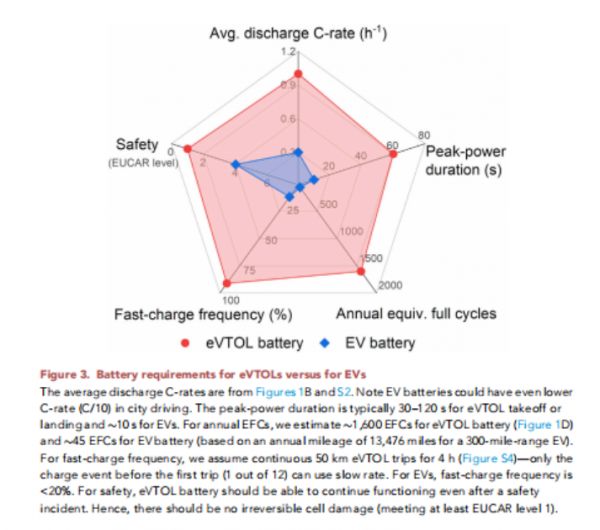 论文指出,目前市场上的动力电池可以满足垂直飞行器的部分性能要求,但十分有限。如日本 SkyDrive SD-03 概念飞车,在满电续航的情况下只能维持 5-10 分钟。对此论文作者王朝阳称:“我认为,垂直起降飞行器可以节省大量时间,提高生产率,并打开交通运输的空中走廊。但它对电池的要求很高,很有挑战性。”具体来说,飞行汽车的电动电池需要克服高能量密度、高功率密度、快速充电、长循环寿命和高安全性等多个方面的问题。而最具挑战性的是,这些内在需求有时会相互矛盾。“高能量密度会降低充电速度,而快速充电通常会减少充电周期。” 王朝阳解释到。