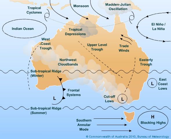● 影响澳大利亚气候的多种因素。位于澳大利亚西北方的印度洋偶极子气候现象多发生于冬季作物生长期,造成的气温和降水变化对农业影响很大 / 澳大利亚气象局