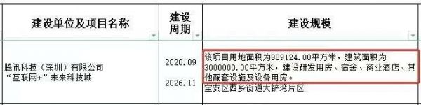 雷达财经注意到,此前在2019年11月29日,腾讯以85.2亿元竞得位于深圳市宝安区西乡街道大铲湾的一地块,用以建设深圳“互联网+”未来科技城。该项目用地面积达80.9万㎡,总建筑面积200万㎡,该项目预计最终可容纳8~10万名员工。