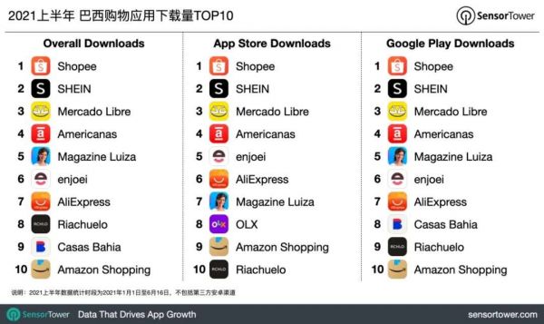 在拉美最大的市场巴西,Shopee以超过2500万次下载大幅超越本土厂商Americanas,遥居榜首。在追求时尚的巴西市场,SHEIN同样以物美价廉的中国制造得到当地消费者的青睐,位列榜单第2名。