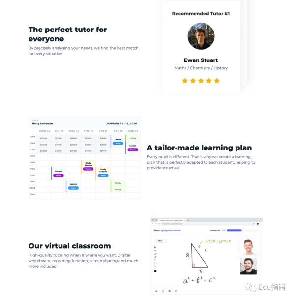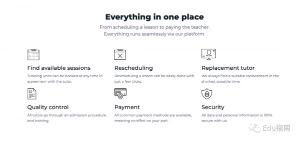 然后根据学生的日程安排和导师组织学习计划;课程、评估和付款(基于预订的套餐)也都在平台上处理。