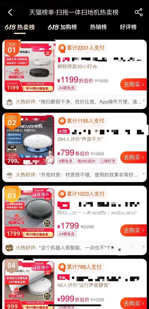 正如小米用价格打开国内市场一样,国内扫地机器人价格都相对较低。以某电商平台6.18销售数据为例,扫地机器人热卖榜排行前5名价格均低于2000元人民币,排名第一价格为1199元、第二名价格为799元。