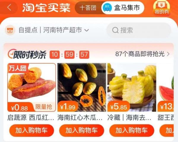 另外,阿里当时一边进行多条线内部赛马,尤其重点宣传盒马集市,另一边又与十荟团签订合作,在手淘APP开设“淘宝买菜”端口。