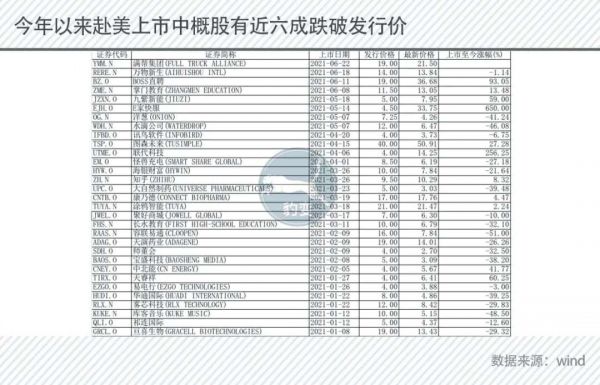 如果时间线再放宽,自2020年至今,赴美上市的中概股有44%的跌破发行价。