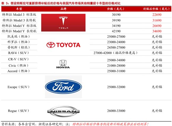 对比特斯拉Model 3 和Model Y补贴前的价格和美国汽车市场其他销量前十车型的售价,特斯拉车的价格还是高出17%~31%。也就是说,特斯拉离大众都能买得起车的价格,还差一步。