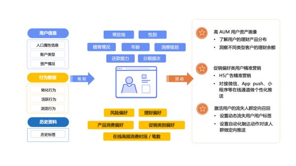 举个例子,某理财产品拥有复杂的业务体系和线上线下多重转化流程,但其一级画像标签十分简单清晰,而且对于业务转换效果十分显著,就是抓到了用户最核心的动作和衔接过程。