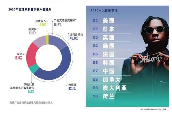 IFPI(国际唱片业协会)发布的2021年《全球音乐报告》指出,中国录制音乐在全球市场的排名已连续三年稳居全球第七。
