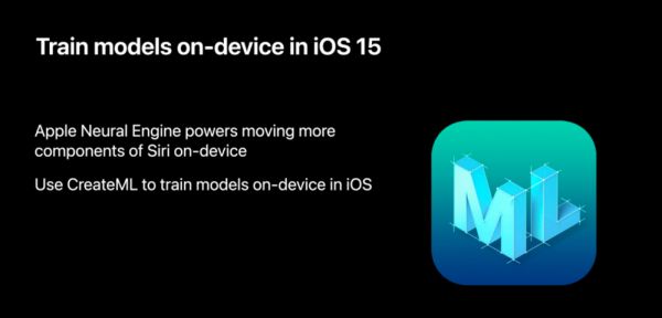 在 iOS 13 的更新中,苹果首次引入了完全在设备本地生成 Siri 的功能,当然这个功能也得益于 iPhone 每一代芯片计算能力的提高。在 iOS 14 中,iPhone 键盘的听写可以在本地实现,意味着输入法保留下来的语音数据不会上传到服务器,同样是 Siri 的语音识别模型可以在本地运行的案例。到了 iOS 15,开发者甚至可以在 iPhone 和 iPad 上直接训练机器学习模型,从而将照片等敏感数据全部留在本地。