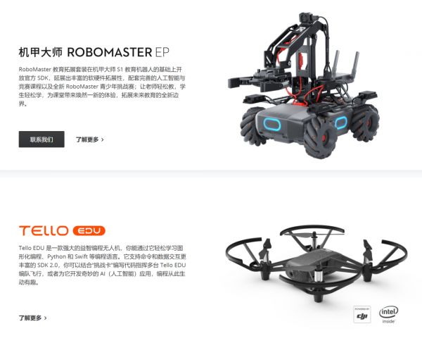 除了这些和学科课程学习的智能学习硬件,乐高、大疆等厂商在素质教育领域也进行了硬件上的尝试。例如,大疆推出了可编程无人机、人工智能教育机器人等等。教育+智能硬件的想象空间,正在持续被各大厂商所扩展。