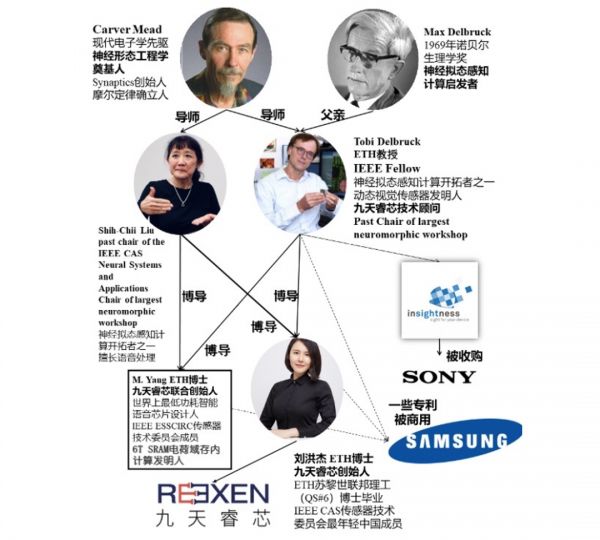 九天睿芯的芯片技术理论依据源自类脑计算,自Carver Mead在90年代提出理论,经由刘洪杰在苏黎世联邦理工的博士导师Tobi Delbruck在神经感知计算领域实现实际应用落地(主要针对视觉领域,三星及sony提供研究经费)。刘博士读博期间,基于导师的研究理论,将神经感知计算细分到模拟预处理及存内计算做进一步的深入研究,将模拟预处理从视觉应用,逐步开展到多种传感信号的处理及计算。