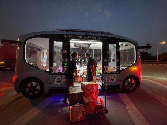 只不过这次和平时不同,除了无人配送小车,Robotaxi和Robobus临危受命,也被拉过来服务场景。不仅有最后一公里,还有最后的3-4公里,可以看成是简化版的仓到仓物流。