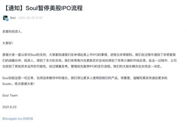 按计划本将在6月24日赴美上市的Soul,突然在前一日下午宣布暂停IPO流程。